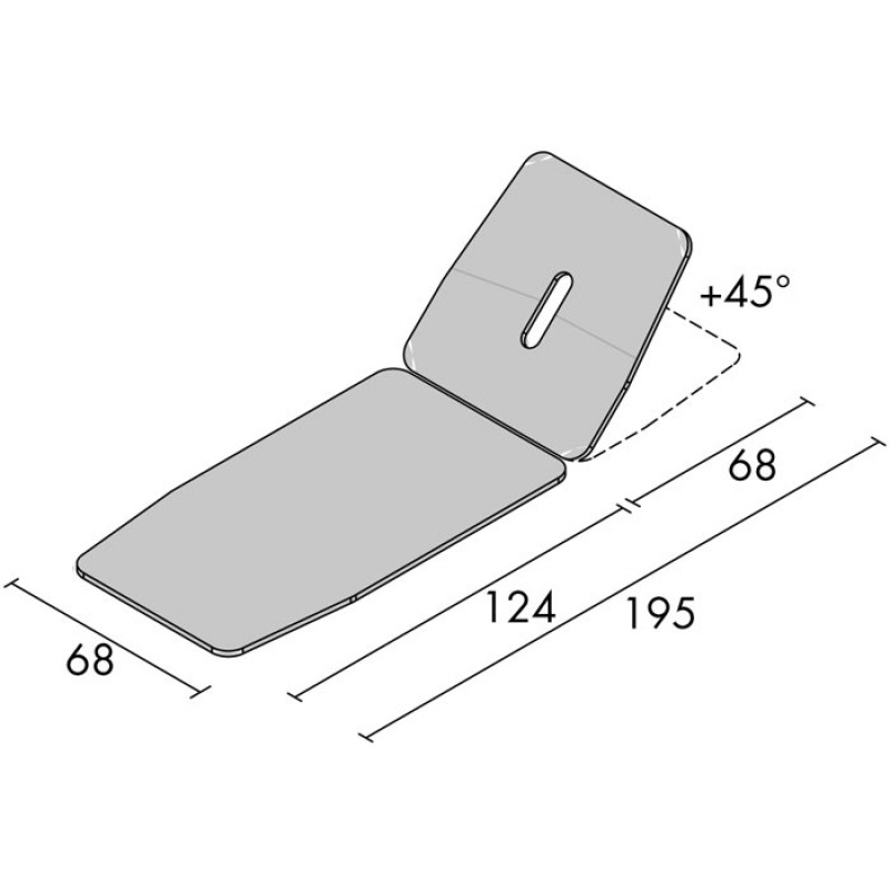 Lettino da visita e trattamenti ad una sezione mobile, testata con sistema di regolazione manuale.