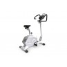 Un vero ergometro con 2 modalità di utilizzo: modalità AUTO (rpm - indipendenti) e modalità MAN (rpm - dipendenti) l'utente seleziona un livello di sforzo ( "potenza"), che rimane sempre fisso indipendente della frequenza della pedalata. Grande manubrio ergonomico regolabile, con finitura di pregio in eco pelle, per una piacevole sensazione al tatto. Sistema di resistenza magnetico ad INDUZIONE regolabile elettronicamente, con soglia max. 400W in modalità automatica, min. 25W con step di 5W in AUTO MODE; 20 livelli di sforzo in MAN MODE. Sistema di trasmissione a cinghia EXTRA, estremamente fluido e silenziosissimo (rapporto di rotazione 9.0 - massa volano 10 kg con rivestimento esterno di rame). Sella regolabile in altezza e profondità, con sgancio rapido per la sostituzione; in dotazione sella extra 3D GEL. Rilevazione delle pulsazioni cardiache mediante sensori palmari o fascia cardio telemetrica in dotazione. Leggio porta tablet, pedali autolivellanti (con cinghietti) ruote per il trasporto e piedini auto livellanti.