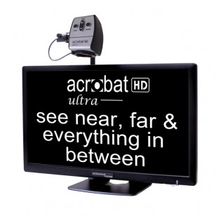 Acrobat HD 24" è il più versatile videoingranditore prodotto da Enhanced Vision; è infatti lo strumento ideale per svolgere tutte le più comuni attività quotidiane. Ruotando la telecamera l’utente può leggere, scrivere, vedere se stesso ed ingrandire le immagini a qualsiasi distanza. Acrobat HD è un sistema completo per la casa, a scuola o al lavoro. Disponibile con monitor di diverse dimensioni (22″, 24″ e 27″), permette una visualizzazione chiara e immediata in qualunque situazione. Acrobat è dotato di una telecamera montata su un braccio snodato che può essere orientata: • verso il basso per la lettura di libri, per la scrittura o per piccoli lavori manuali; • verso se stessi in modo da attivare la modalità specchio; • in lontananza per visualizzare un qualunque oggetto a qualunque distanza, come ad esempio una lavagna.