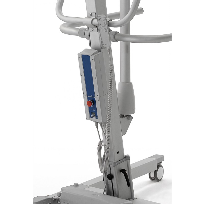 La base è regolabile in larghezza per consentire l'accesso intorno a sedie e ad ostacoli di diverse dimensioni grazie ad un'apertura gambe elettrica.