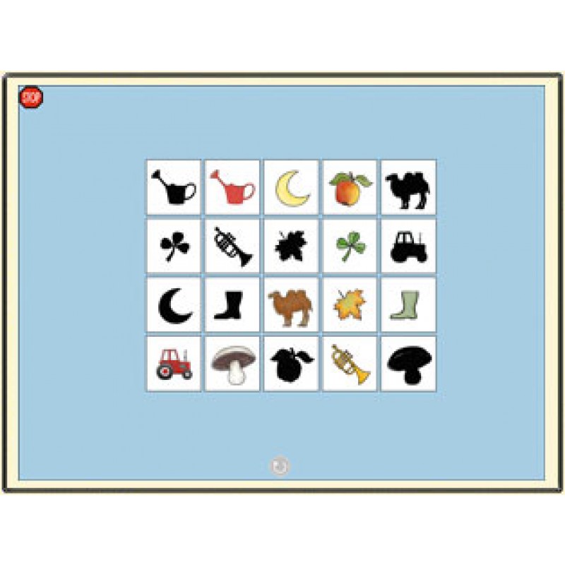 DUE DI DUE è software pensato per giocare a “Memory”, puoi creare abbinamenti tra: immagine-immagine, immagine-parola, immagine-suono, suono-parola e molti altri ancora. Si può giocare con le bandiere degli stati, gli animali, gli oggetti, i numeri e tante altre immagini, a carte coperte o scoperte. DUE DI DUE è un sistema aperto con il quale puoi creare i tuoi abbinamenti personalizzati importando le immagini ed i suoni che vuoi. E' presente un modulo statistico per monitorare i miglioramenti ed è prevista la possibilità di controllare tutti gli esercizi a scansione utilizzando un sensore esterno.