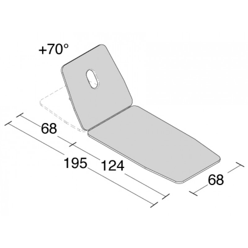 Testata lunga 68 cm regolabile fino a +70° con molla a gas, dotata di foro naso-bocca.