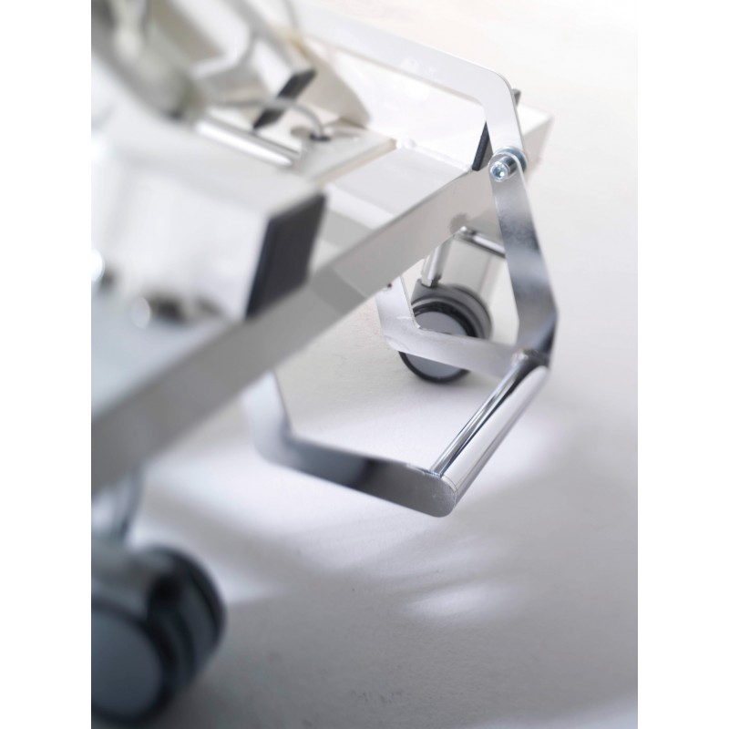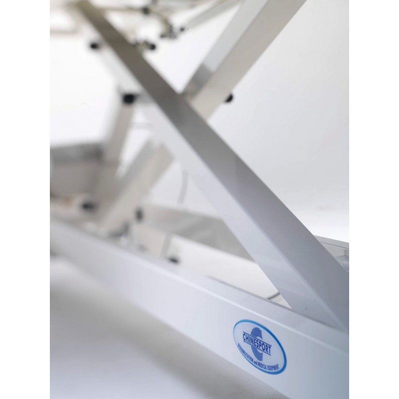 Lettino regolabile in altezza elettricamente con pedaliera pneumatica o barra perimetrale o in maniera idraulica da 50 a 97 cm.