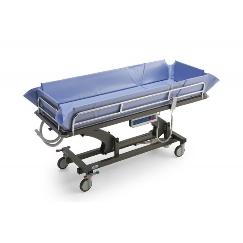 Barella per doccia e trasferimento per adulti utilizzabile sia in struttura assistenziale che a domicilio. Modello configurabile a seconda delle preferenze dell'operatore o dei familiari e delle caratteristiche antropometriche dell'utente. Dispone della possibilità di assumere la posizione di Trendelenburg, oltre all'inclinazine del piano di appoggio per il drenaggio dell'acqua. Dotata di paracolpi girevoli incorporati nella struttura del piano di appoggio.