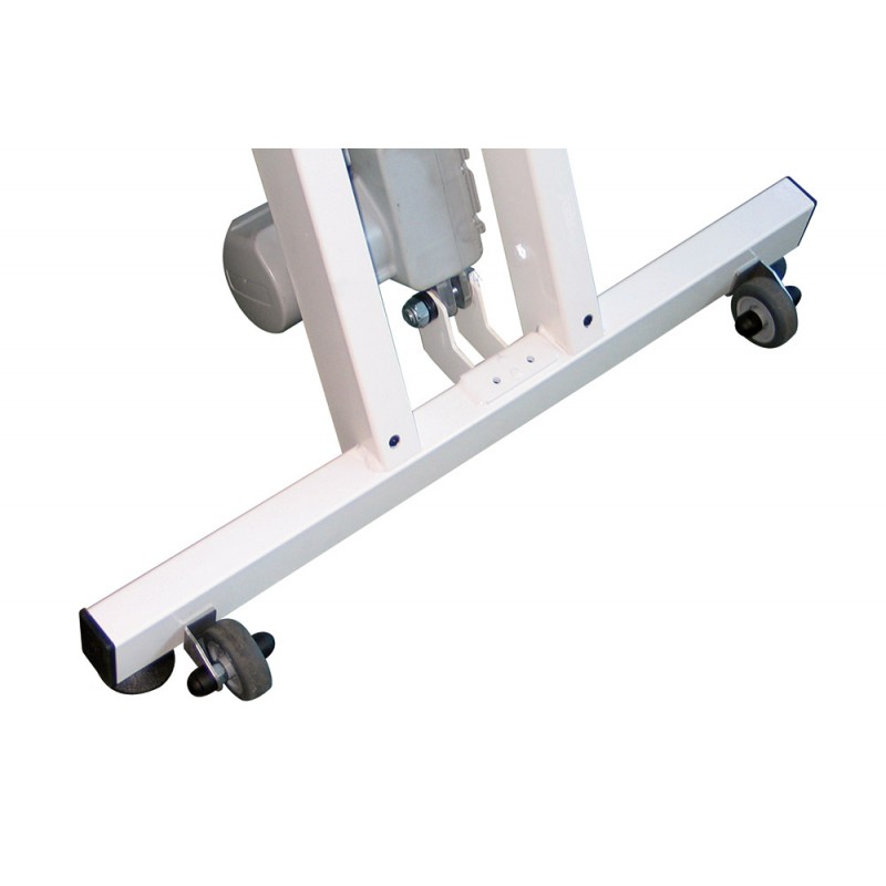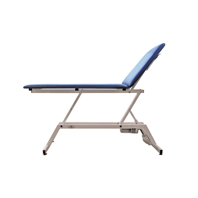 Letto da visita di base a due sezioni con struttura in acciaio verniciato e ruote di trasferimento.