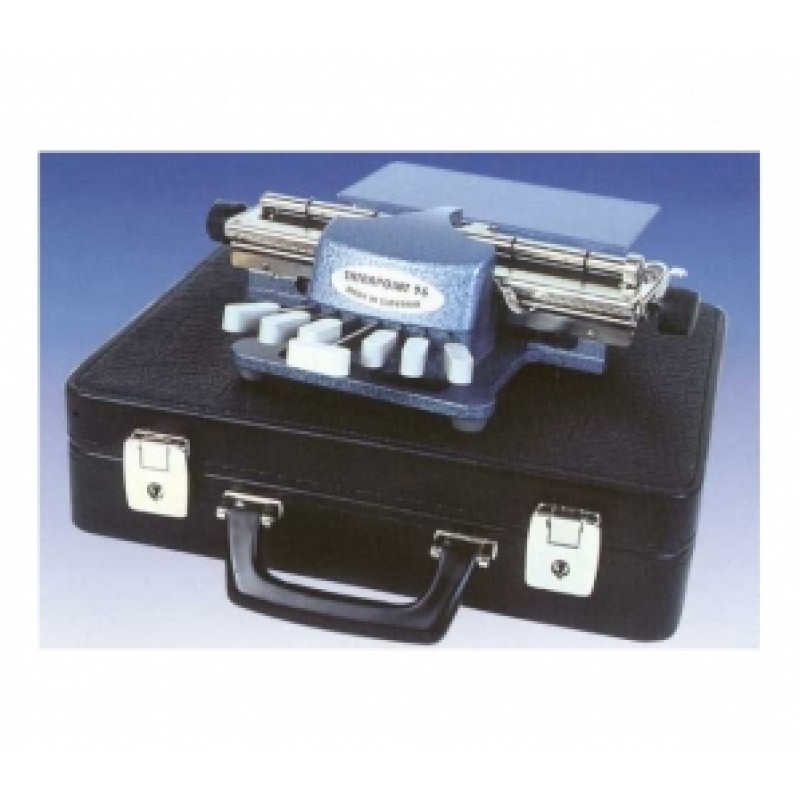 La macchina viene consegnata in una valigetta portatile ed è fissata su un piano in gomma rimovibile con quattro fori.