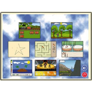 1) Il treno del domino; 2) Raccogli le mele; 3) Costruisci l'immagine seguendo i puntini; 4) Esci dal labirinto; 5) Rendi la figura uguale; 6) Disegna ; 7) Concerto, prepara il palco;8) Scopri l'immagine.