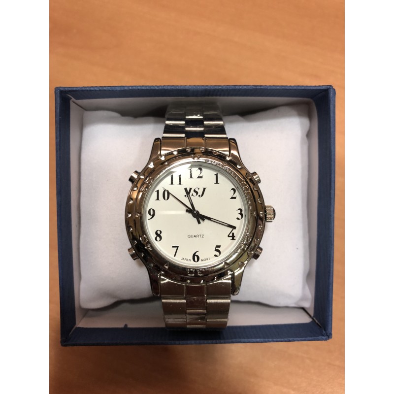 Orologio parlante con cinturino in metallo per anziani e non vedenti, facile da usare.