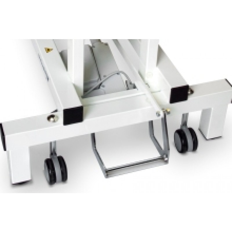 Ruote piroettanti ed anti traccia; dotate di un sistema di freno centralizzato con un unico comando a pedale.